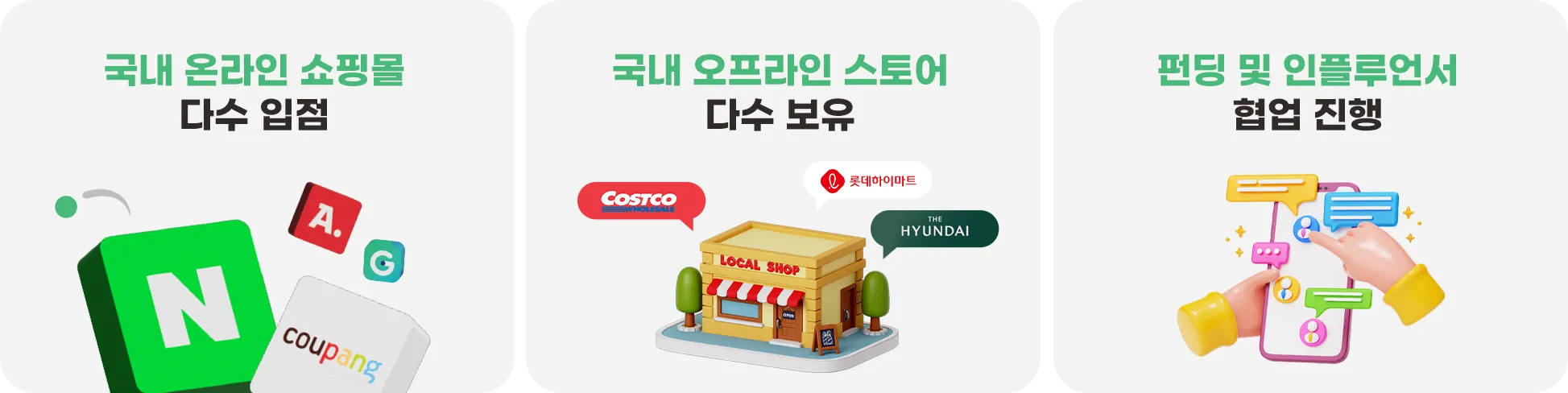 국내 주요 온오프라인 플랫폼에 다양한 해외 서플라이어 채널을 통해 양질의 제품을 공급하고, 트렌디한 글로벌 브랜드와 제품을 국내 시장에 소개합니다.